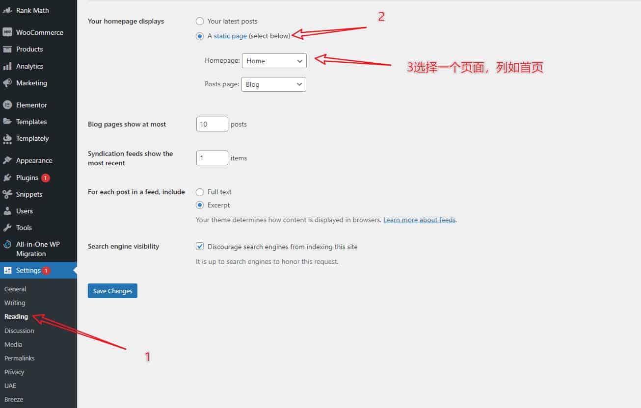 新启动的wordpress网站默认是以文章列表做为主页的,我们需要设置一个单独页面作为首页,比如设置WordPress网站首页为Home页面。